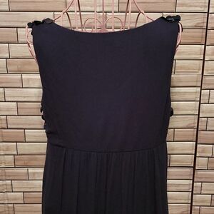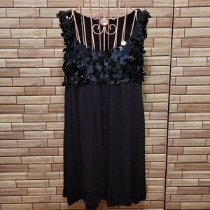 Large navy sequins on this crew neck sleeveless top. Has an elastic gather at the bottom giving it a full look. Size L