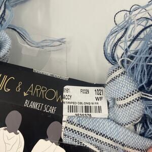Stay cozy and stylish with this Twig & Arrow blanket scarf! This scarf features a beautiful blue striped design and fringe ends. Brand new in packaging with tags, it was originally priced at $26.