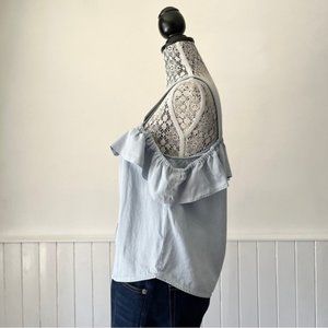 Twig Blue & White Striped Boho Ruffled Cold Shoulder Tank Top Size M