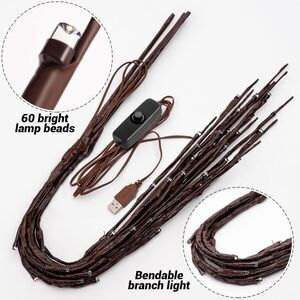 They are USB interface, only lighted when plugged in, this style is an upgraded one from the battery model, now just need a portable charger instead of 6 x AA Batteries, which saves a lot of money for you. Willow lights are bendable, you can adjust them, make them twist, or pull them up or down to create your own natural look. Each branch lights is 30 inches tall, every branch has 5 lighted twigs, every twig has 20 led warm light bulbs.