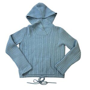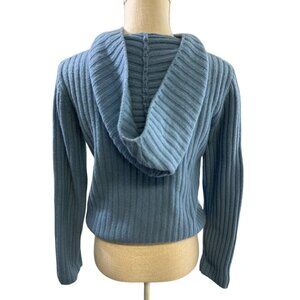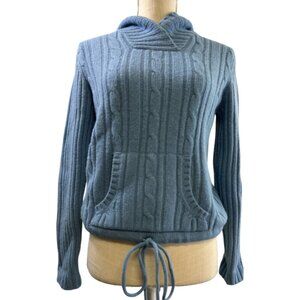 Twiggy London Lambswool Blue Sweater Hoodie Cable Knit Tie Waist Pocket Sz S
