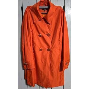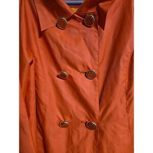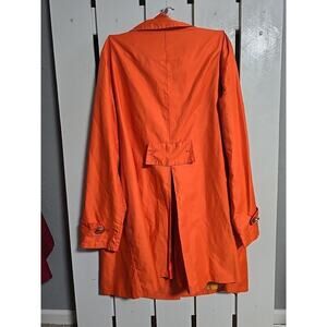 Good Condition, Women's XL Twiggy London Rain Coat, Lightweight with a Satin Like Outer Shell, Bright Bold Tangerine Orange with a Yellow Orange Inner Lining