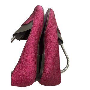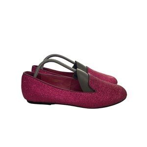 Twiggy London Women's 7.5W Pink Glitter Loafers Slip-On flats shoes