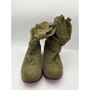 Twiggy London Womens Suede Leather Upper Studded Boots Size 7 Olive Green