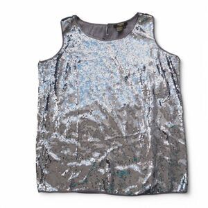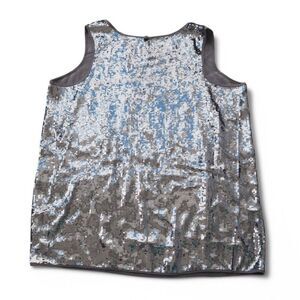 Twiggy London Sequined Metallic Scoop Neck Sleeveless Top Silver Women's 1X