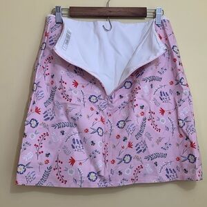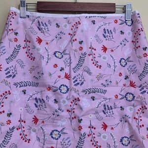 100% Cotton Pink Floral Wild Flower Bees Fully Lined Beautiful Skirt in size Large with hidden back zipper hook eye closure.