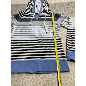 Twik by Simons Women's Size Medium Striped Hooded Striped Pullover Hoodie Sweatshirt Blue Black White