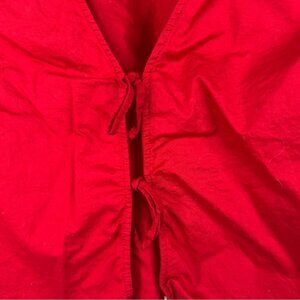 Twik long sleeve ribbon tie up front shirt v neck Bold Red Blouse