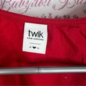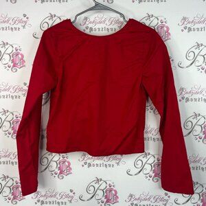 Chic red blouse with button details. Long sleeves. Perfect for stylish outings. Small.
