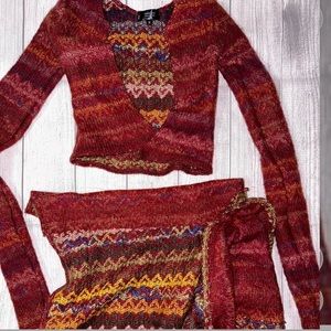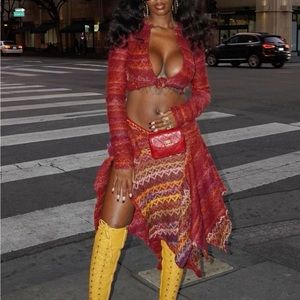 This includes the long sleeve top and the midi skirt. The top can be styled as a long sleeve or wrapping it around like in the pictures.