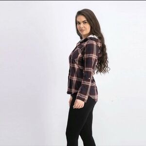 Polly & Esther Womens purple Plaid Button Up Shirt Hoodie Long Sleeve Roll Tab