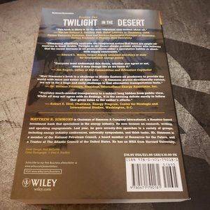 Twilight in the Desert reveals a Saudi oil and production industry that could soon approach a serious, irreversible decline. In this exhaustively researched book, veteran oil industry analyst Matthew Simmons draws on his three-plus decades of insider experience and more than 200 independently produced reports about Saudi petroleum resources and production operations. He uncovers a story about Saudi Arabia’s troubled oil industry, not to mention its political and societal instability, which differs sharply from the globally accepted Saudi version. It’s a story that is provocative and disturbing, based on undeniable facts, but until now never told in its entirety. Twilight in the Desert answers all readers’ questions about Saudi oil and production industries with keen examination instead of unsubstantiated posturing, and takes its place as one of the most important books of this still-young century.