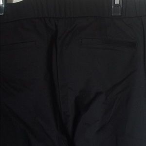 Twill Front, black back. Slip pockets, Elastic back, one button/Zipper front