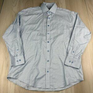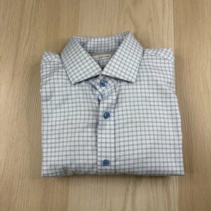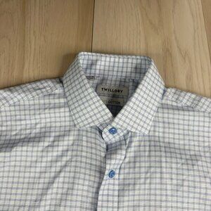 Twillory Mens Blue Micro Checks Casual Classic Preppy Dress Shirt Size 32/33