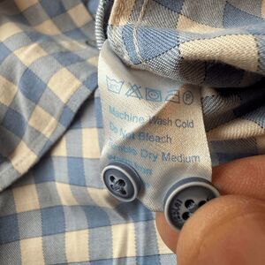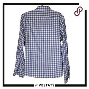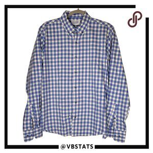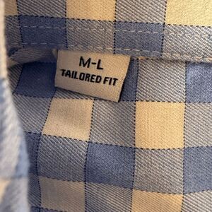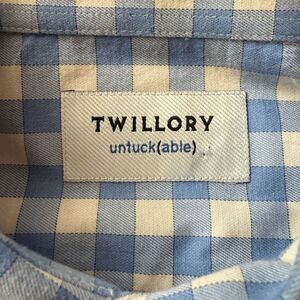 Twillory Mens Untuckable Plaid Tailored Fit Button Up Shirt Blue Cream Large