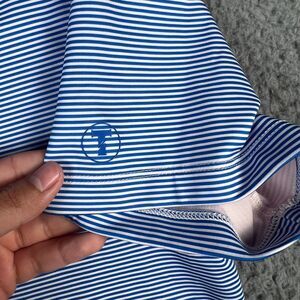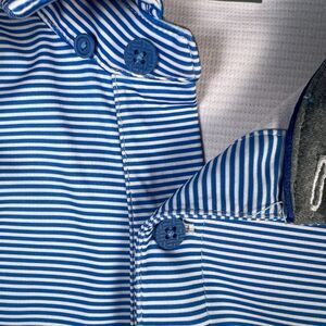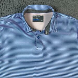 Twillory Polo Shirt Mens Large Blue Pink Striped Athleisure Performance Golf