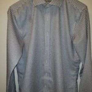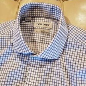 Twillory Shirt 15.5 34/35 Non Iron Safe Cotton Tailored Fit Navy Windowpane.