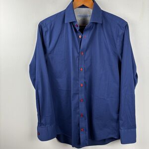 Twillory Shirt Mens 15.5 32 33 Trim Fit Blue Check Performance Dress Red Buttons