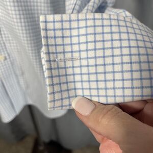 Twillory Shirt Mens 16 32/33 Blue/Wht Check Cuff Links Performance Tailored