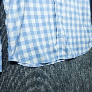 The Twillory Men's XL Blue White Plaid Untuckable Button Up Shirt is a stylish and versatile piece perfect for casual occasions. Made from a blend of spandex and cotton, this shirt offers a comfortable fit with a tailored look. The long sleeves, button-down closure, and collared neckline add a classic touch, while the multicolor plaid pattern adds a pop of color.