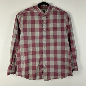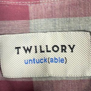 Twillory Shirt Mens XL Untuckable Tailored Fit Button Down Cotton Red Gray Plaid