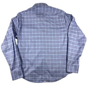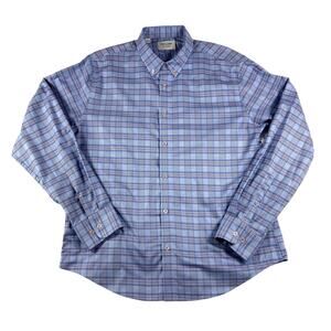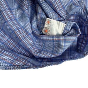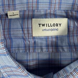 Twillory Tailored Fit Untuckable Plaid Blue Casual Business Shirt-Mens Large