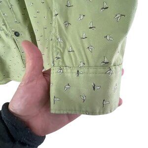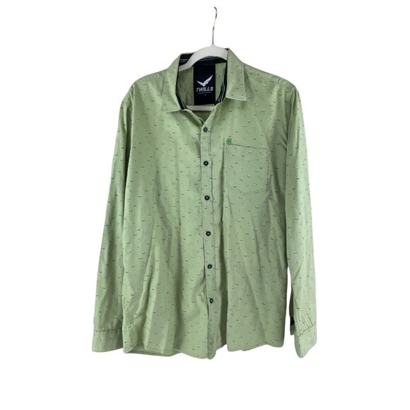Twills Printastic Mens Green Button-Up Shirt Sz XL Long Sleeve Bird Print Casual