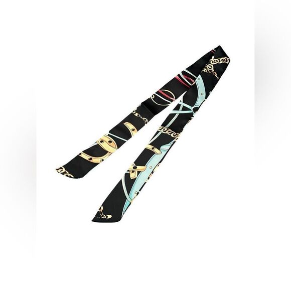 Black, gold, blue, pink color twilly perfect for your handbag, neck or hair accessory.