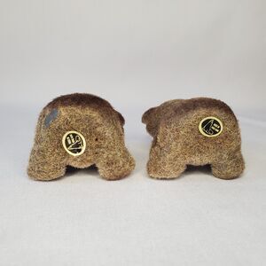 Twin Flocked Vintage Teddy Bear Fuzzy Hand Painted Made in Hong Kong