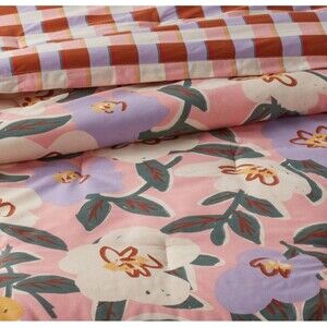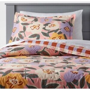 Twin Flower/Plaid Reversible Kids' Comforter Set - Pillowfort NEW