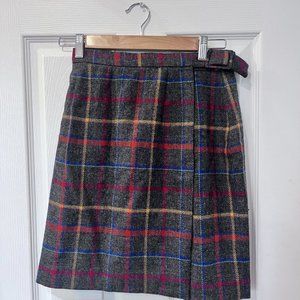 Incredible vintage plaid wrap-style mini skirt with fabric belt.