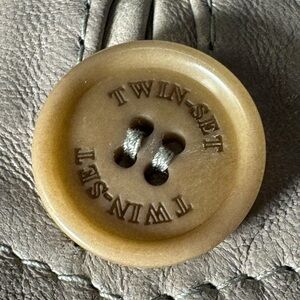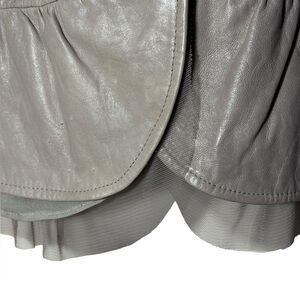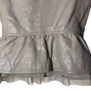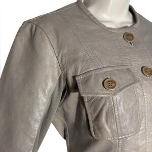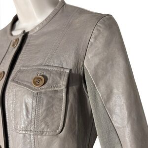 Twin Set Simona Barbieri Size small 100% Genuine Lamb Leather Beige/Gray jacket