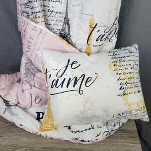Twin Size Paris Theme Reversible Blanket and Pillow Set