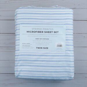 Twin Size Sheet Set Sheets Microfiber Light Blue Stripe