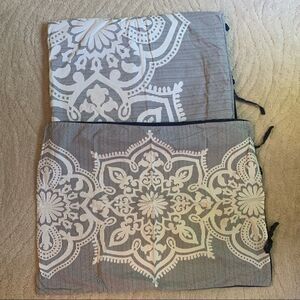 Twin Size Cotton Blue and White Striped Medallion Duvet Cover and Pillowcase Set