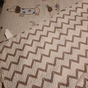 Cute twin size bedspread has dog patteen on one side zig zag on other side