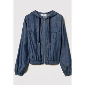 The TwinSet Milano Chambray hoodie with zip in Blue Denim is a stylish women's jacket made from Lyocell 100%. It features a zip closure, lace accents, and a mesh fabric type, giving it a unique and fashionable look. The size is L, and it falls under the denim jacket style, making it a versatile piece for any casual outfit.