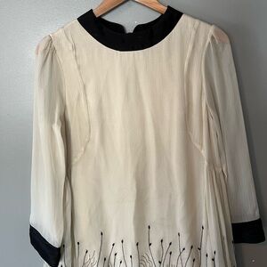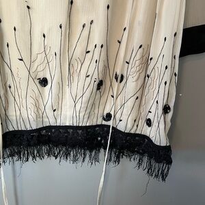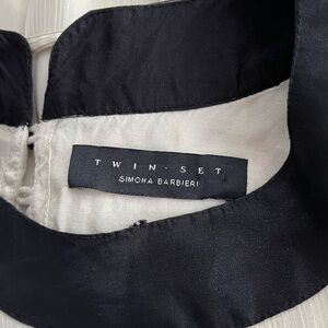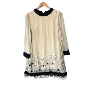 Twin-Set Simona Barbieri Ecru Black Floral Beaded Tassel Tie Back Dress