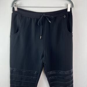 Twin-Set T.S.J. Black Sweatpants Leather Striped Jogger Ribbed Cuff Sz M Medium