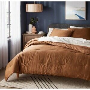 This listing is for a brand new Threshold Twin/Twin XL Washed Cotton Sateen Comforter and Sham Set in Light Brown.