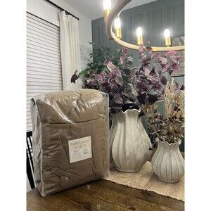 Twin/Twin Extra Long Washed Cotton Sateen Comforter and Sham Set Light Brown NEW