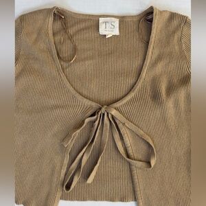 Twine And String Front Tie Nude Crop Blouse