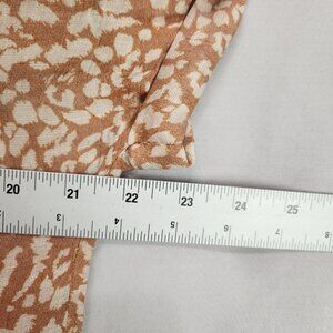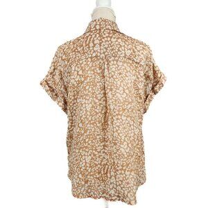 Twine & String Button Up Blouse Women's M Tan Floral Cottage Short Sleeve Casual