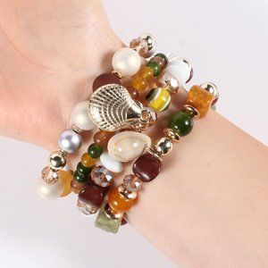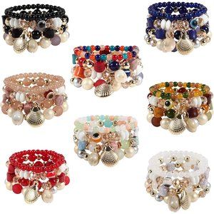 SIZE--STRETCH, Durable Rope, Never Need to Worry About the Size, Hippie Handmade Shell Charm Style Suit for Women, Teens and Girls. 8 Pcs Different Colors and Styles Bead Bracelet Can Be Free Collocation.