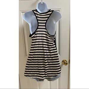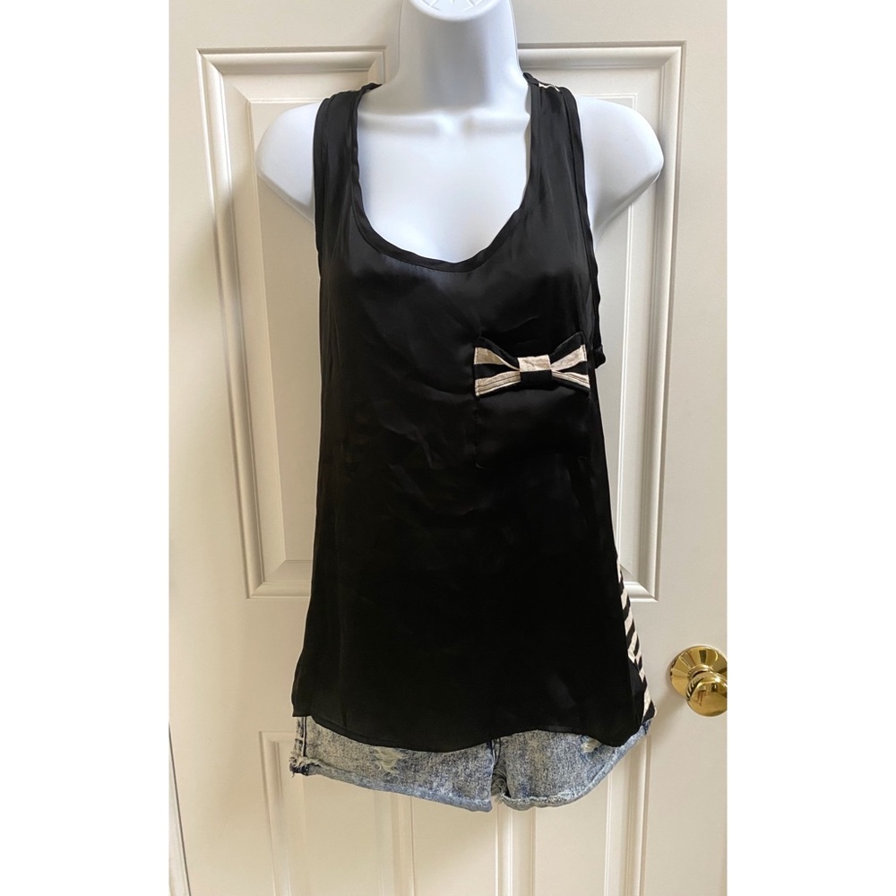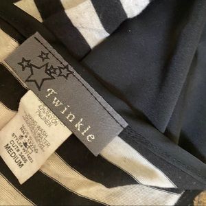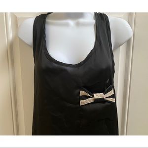 Twinkle Racerback tank top. Black shiny material front with striped bow. Tan & black stripes on the back of tank. Rarely worn, good condition! Size Medium