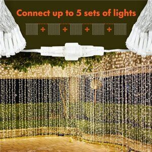 🧿EXCELLENT QUALITY: 6.6ft*9.8ft(width*length), 300 WARM WHITE LED string lights. UL Certificated Output and wire: 29V Voltage Safe Curtain Lights with UL certified, leads to 29V safe output by UL plug-in transformer.