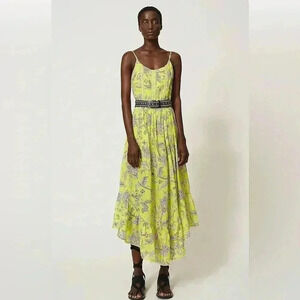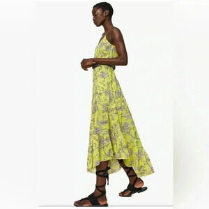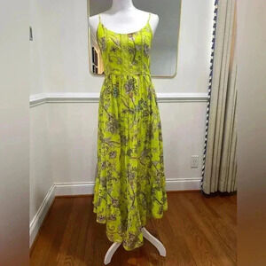 Twinset Long Floral Muslin High- Low Maxi Dress In Pistachio Sz 8