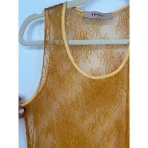 Twinset Milano Gold Sheer Lace Shirt Dress