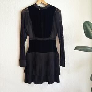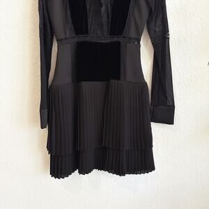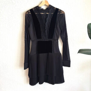 Specific/Style: Pleated skirt, sheer lace and velvet detail, long sleeve