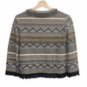 TWINSET fringed jacket a Neutral toned fringe jacket from featuring a fringed hem, a round neck, a raw uneven hemline and three quarter length sleeves.